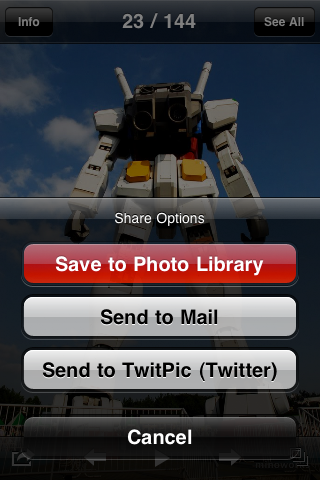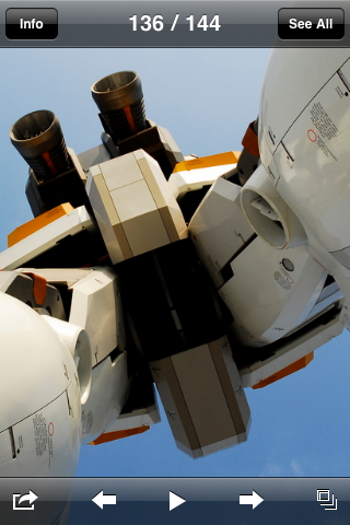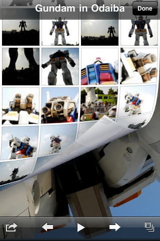 → 2nd Effect: Photos fall down from top to bottom depending upon the Ipad direction by the gravity sensor. - Zoon In/Out mode: Enlarge the specific spot to check in detail.