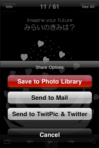 - Share Options : Sending to Mail/TwitPic/Twitter