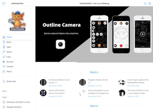 New projects have been added. (MINOWORKS Clock, CityCat, MINOWORKS Stickers) Download on the App Storehttps://apps.apple.com/app/id6738120093 For more information, see Minoworks News page.https://minoworks.net/en/work/minoworks-app