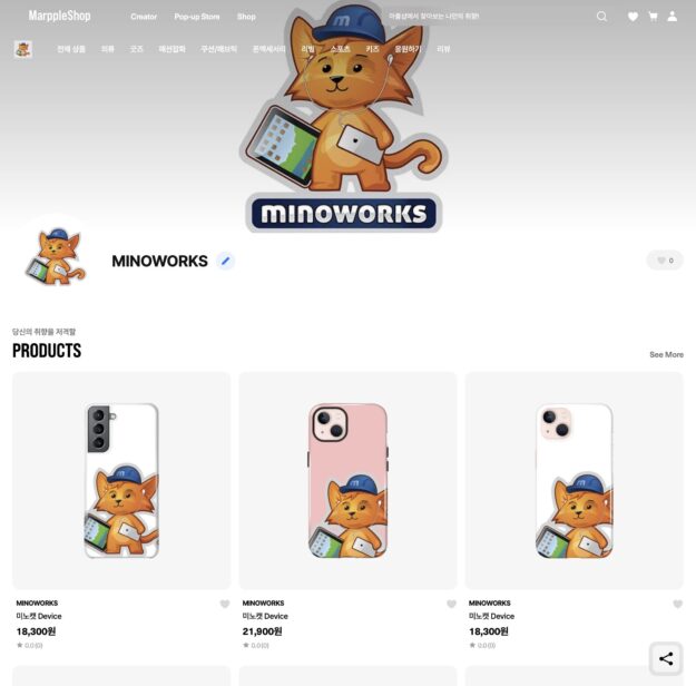 I’ve created a Marpple Shop where you can purchase various merchandise featuring MinoCat.