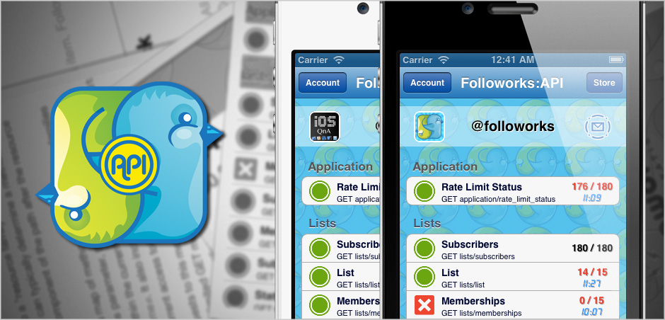 From March 5th 2013 Twitter are removing there current API and it will be fully replaced with the new API version 1.1. Rate limits in version 1.1 of the API are divided into 15 minute intervals, which is a change from the 60 minute blocks in version 1.0. Followorks:API provides real-time information of Twitter API Rate Limiting on Followorks, Followorks HD, Followorks Lite and Followorks OneTouch.