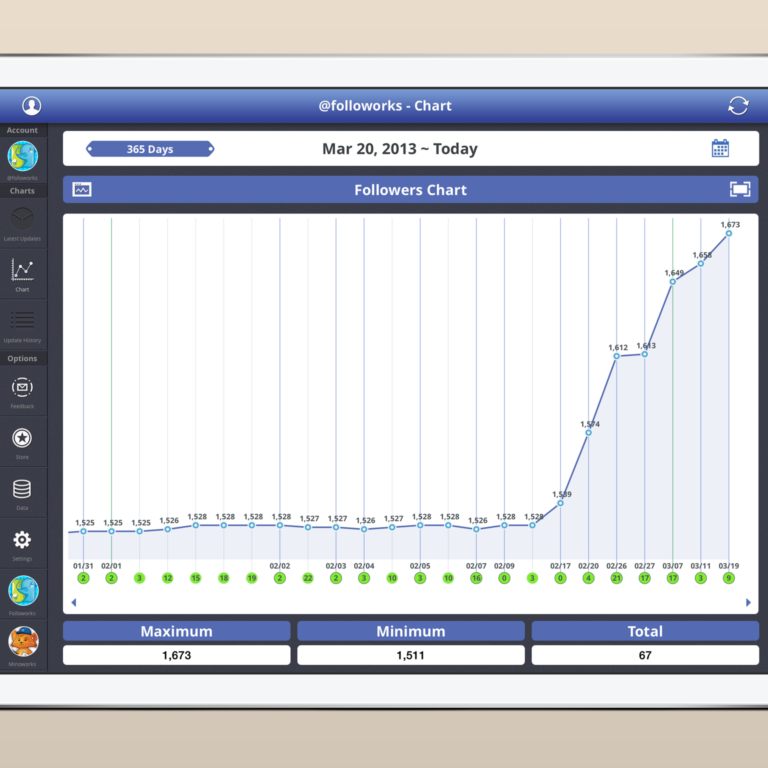 Followorks History is an app to gather and analyse historical twitter usage records within a 365 day period and provides analysis of Twitter information by providing a graph format.