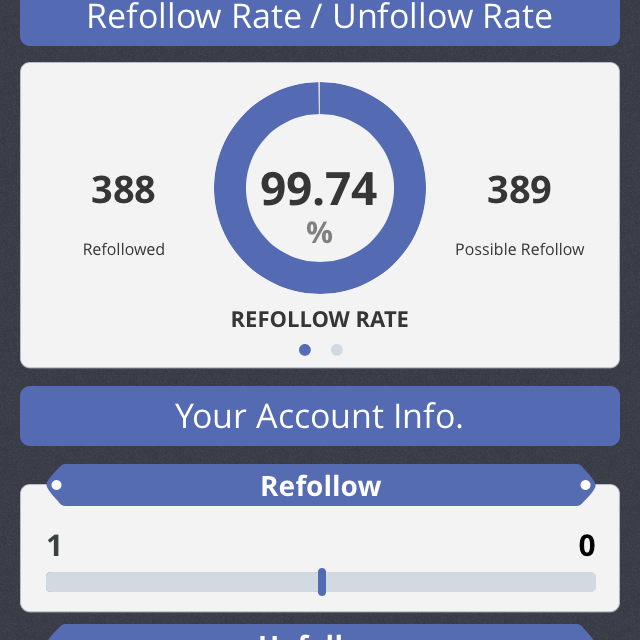 • Re-follow rates, Unfollow rates: Checks daily for changes in the number of people who are followed by you but don’t follow you and those who follow you but do not get followed by you.