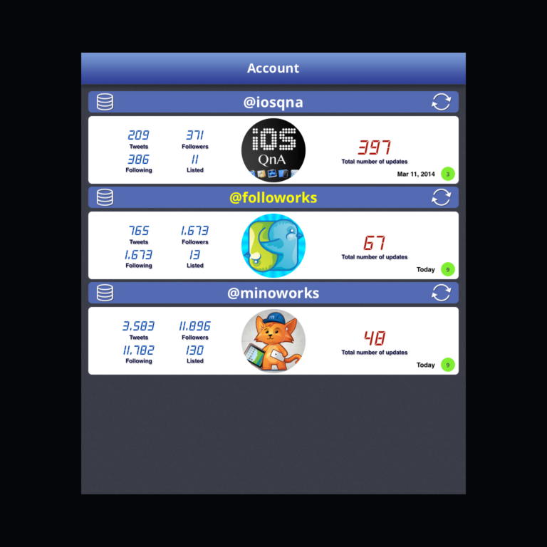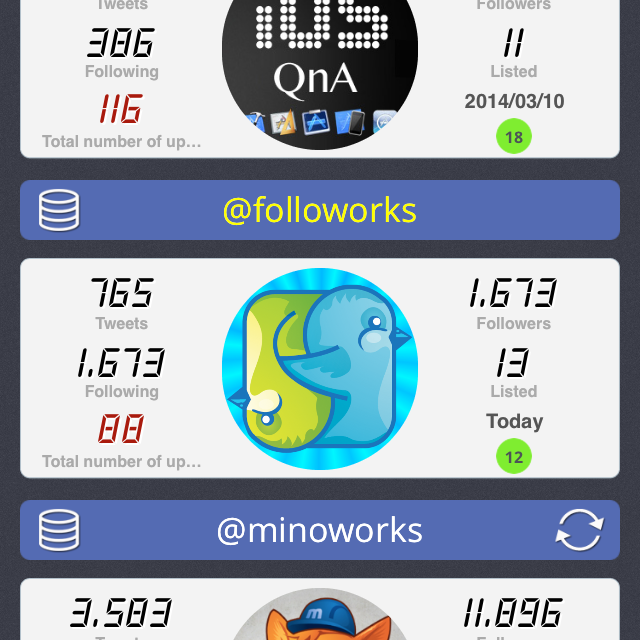 • Chart : Provides and displays various charts by periods. [Mutual follow rates, unfollow rates, number of tweets, number of followers, number of follows, number of list, number of block, number of favorites etc]