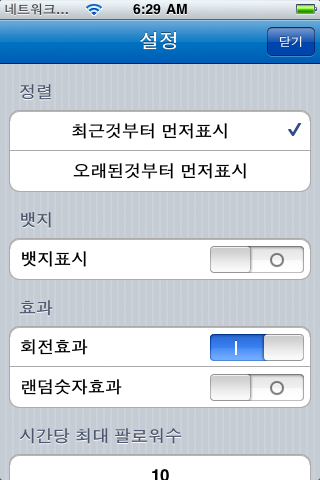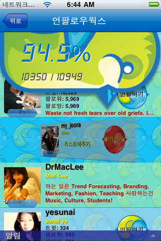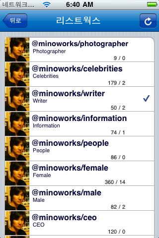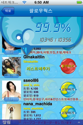 팔로웍스가 1.2.0 으로 업데이트 되었습니다 새로 추가된 기능은 다음과 같습니다. 정렬: 최근 또는 오래된순 블럭/언블럭기능 리스트에 추가기능 시간당 최대 팔로워수 설정기능 이전 팔로어 카운터 확인기능 메인화면에 사용자 아이콘 표시 여러가지 화면전환효과 추가 설정화면 추가 기능향상 기타버그수정 다운로드 스크린샷 Category: 아이폰앱2011년 1월 11일Tags: 리스트관리리팔맞팔블럭상호팔로아이폰앱언블럭트위터팔로어팔로웍스 공유하기 Share on XShare on X Share on FacebookShare on Facebook Pin itShare on Pinterest Share on LinkedInShare on LinkedIn Share on WhatsAppShare on WhatsApp Author: 미노 미노웍스 운영자 Post navigationPreviousPrevious post:팔로웍스 로고 컨셉 디자인NextNext post:팔로웍스 Lite관련게시글2종의 디지털 시계 스타일이 미노웍스 시계에 추가되었습니다.2025년 9월 29일미노웍스 시계 1.2.62025년 8월 28일미노웍스 뉴스 버전 1.2.42025년 8월 18일미노웍스 시계의 iOS버전이 릴리즈 되었습니다.2025년 8월 16일미노웍스 브라우저 템플릿 출시2025년 1월 5일미노웍스 앱이 릴리즈 되었습니다.2024년 12월 11일