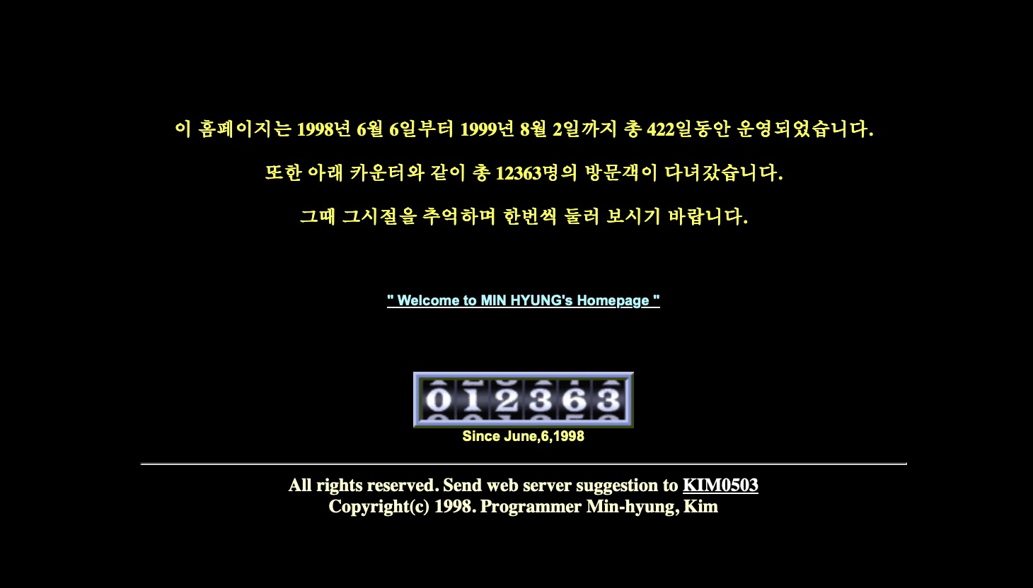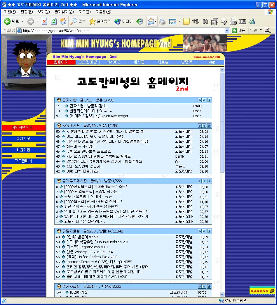 고도칸미녕의 홈페이지 고도칸미녕의 홈페이지 첫번째 버전 1996년 6월 6일부터 운영 422일간 운영후 종료 메세지 고도칸미녕의 홈페이지 2nd 고도칸미녕의 홈페이지 2nd 개발도구MySQLPHPPhotoshopGitHubVSCode Category: 웹사이트By 미노1998년 6월 6일 공유하기 Share on XShare on X Share on FacebookShare on Facebook Pin itShare on Pinterest Share on LinkedInShare on LinkedIn Share on WhatsAppShare on WhatsApp Project navigationNextNext project:시티캣