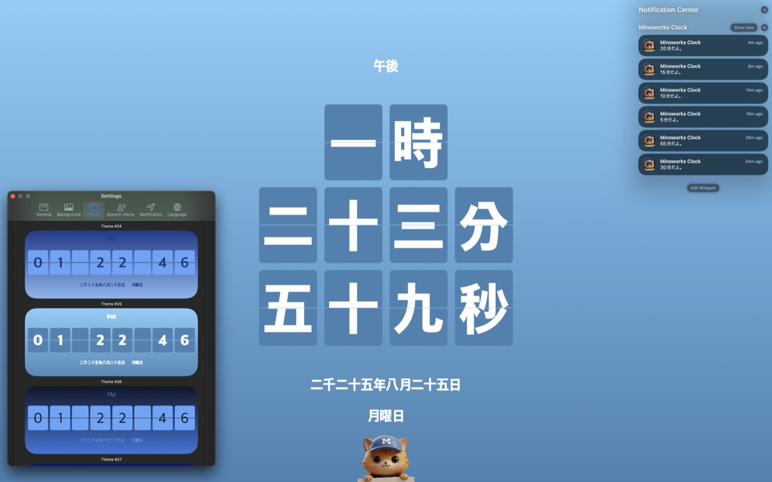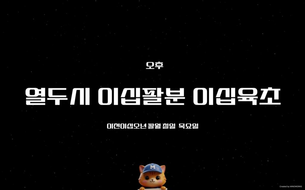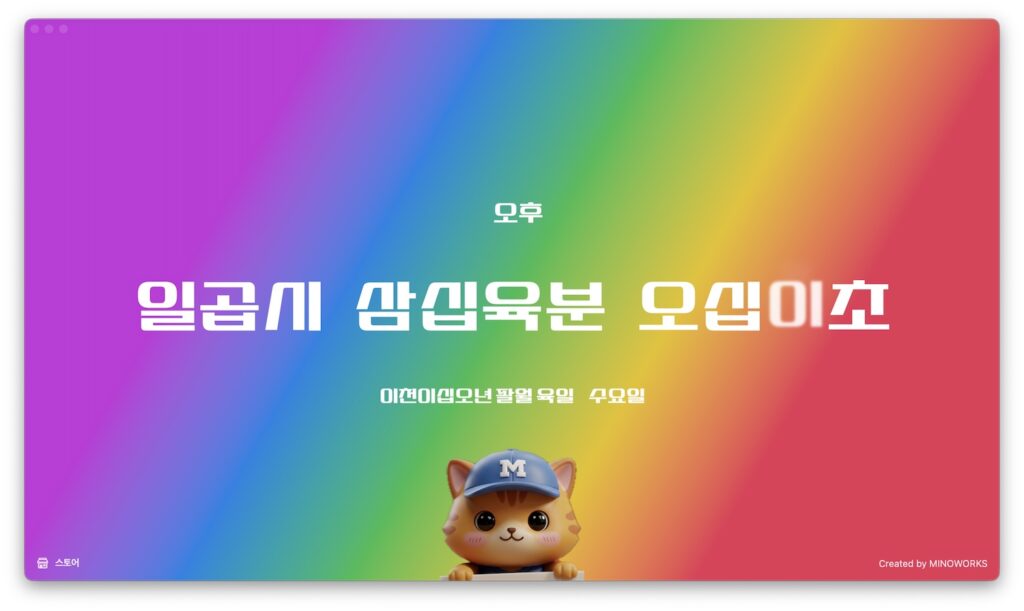 미노캣 캐릭터를 클릭하면 현재시간을 음성으로 안내합니다.