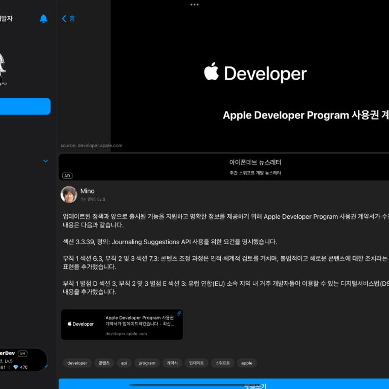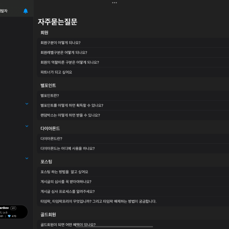 • 토론과 질문: 다른 개발자들과 질문을 공유하고, 문제를 해결하고, 아이디어를 논의하세요. 이 과정에서 서로의 경험을 공유하며 더 나은 개발자가 되어가는 기회를 만나보세요.